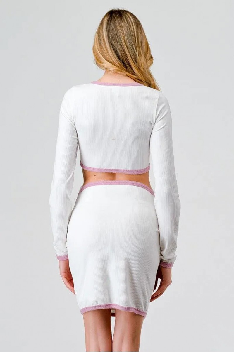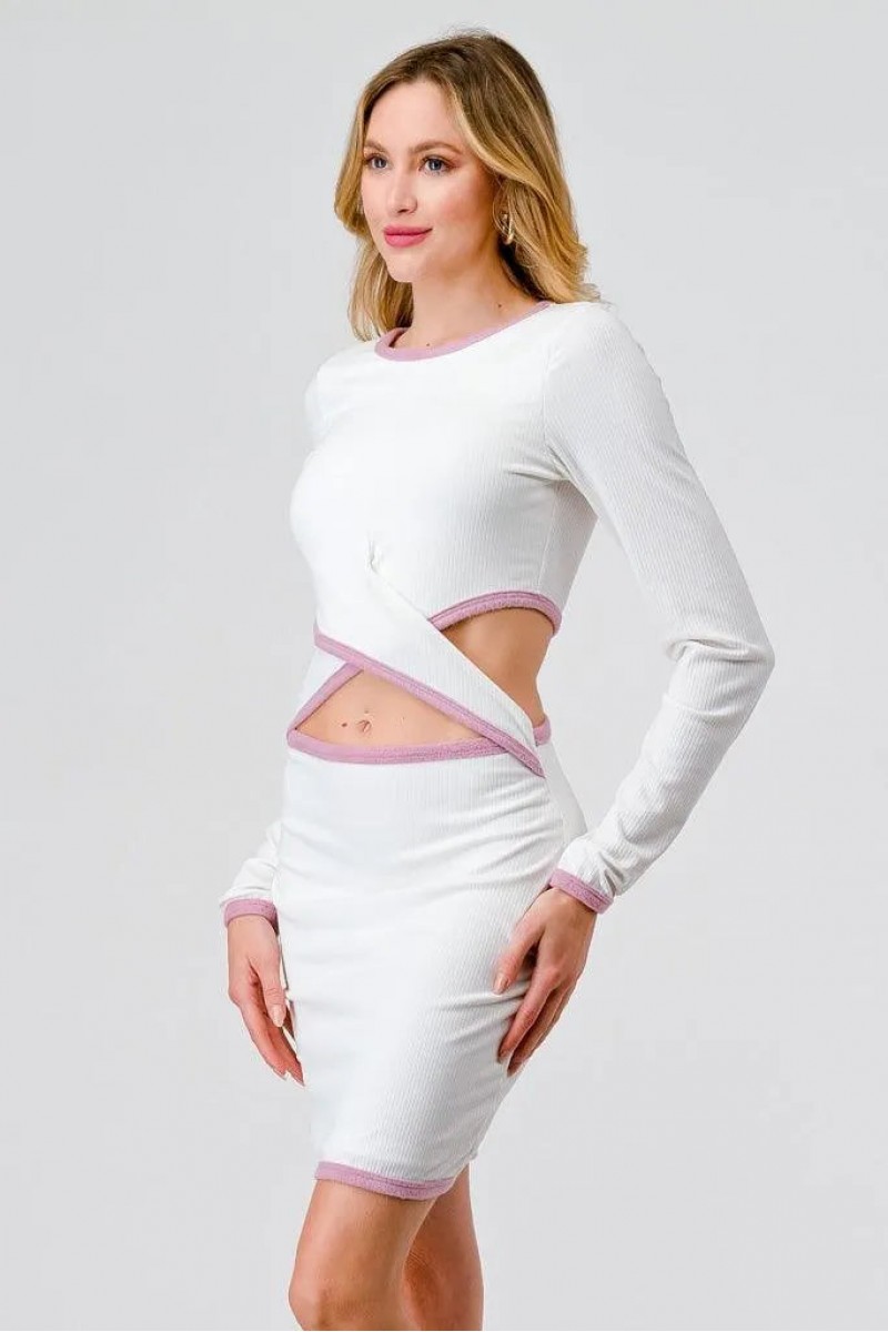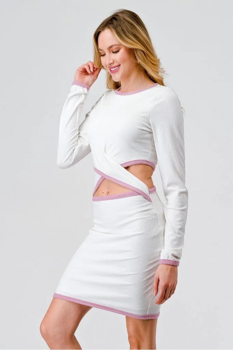 Design: The Ribbed Long Sleeve Cut-Out Criss-Cross Mini Dress combines elegance with a bold, edgy twist. It features long sleeves and a ribbed texture that offers a flattering, body-hugging fit. The cut-out and criss-cross detailing on the front add a touch of allure, making it a standout piece.