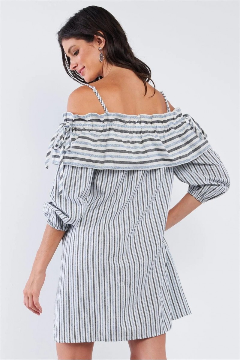 • Product Code: Striped Off-The-Shoulder Ruffle Hem Mini Dress
