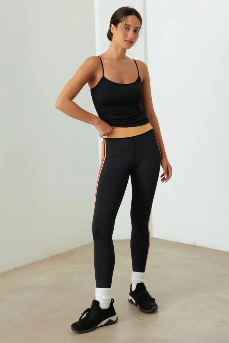 Stay stylish and active with our Sleek High-Waist Legging. These trendy athletic tights are perfect for the fashion-forward boutique owner catering to women who demand both performance and style. The classic black fabric with vibrant red and orange side stripes creates a sleek, eye-catching look that will have your customers feeling confident whether they're at the gym or out and about.