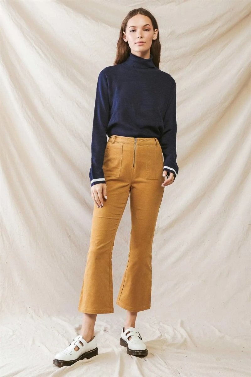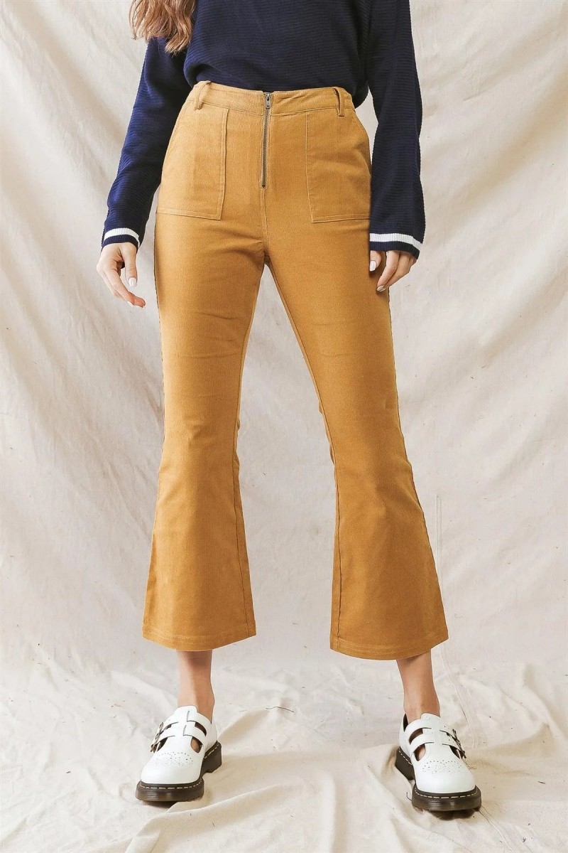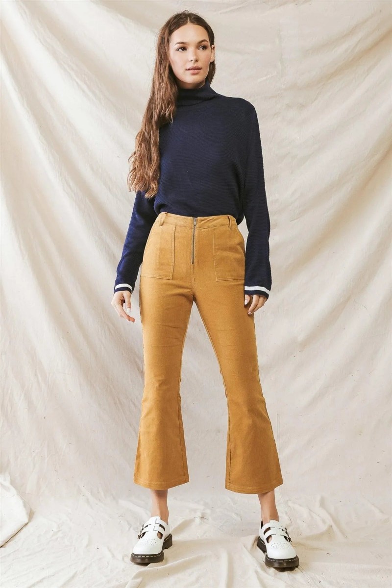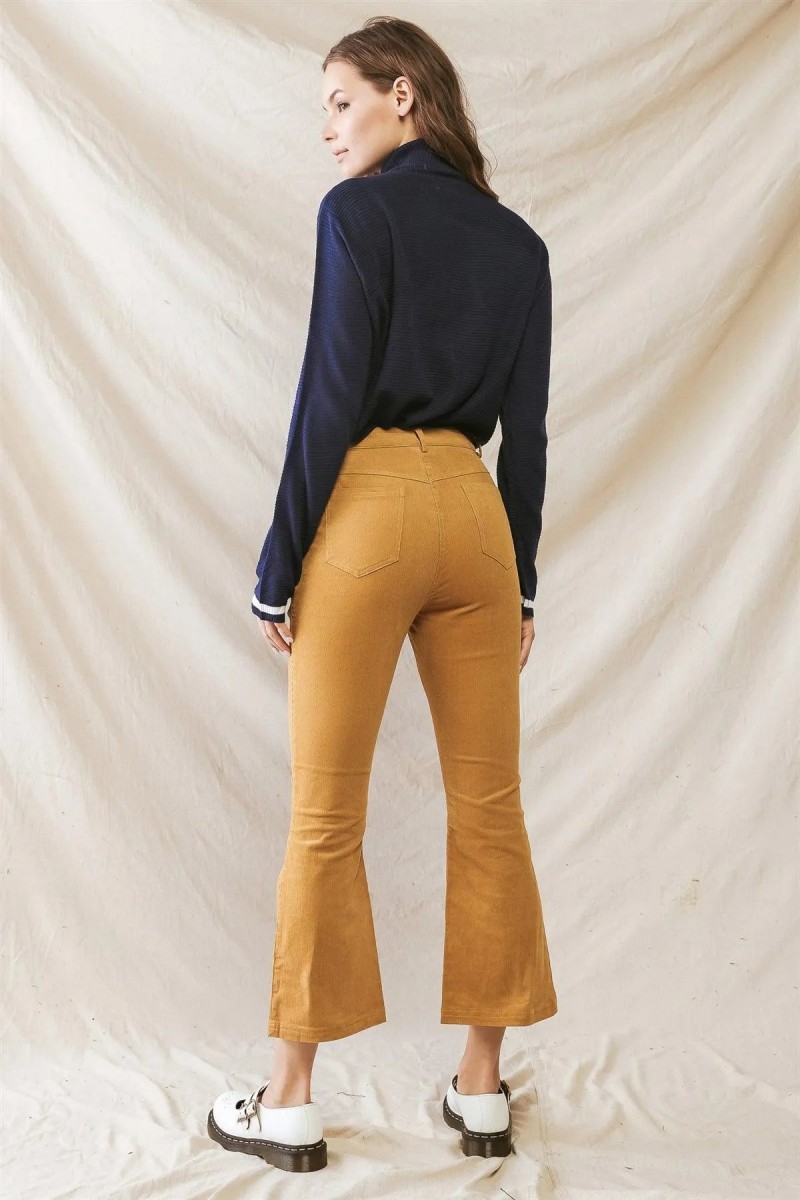 Design: Mustard Denim Cotton Material Four Pocket High Waist Pants — a stylish pair of pants in a vibrant mustard hue, featuring four practical pockets and a flattering high-waisted fit.