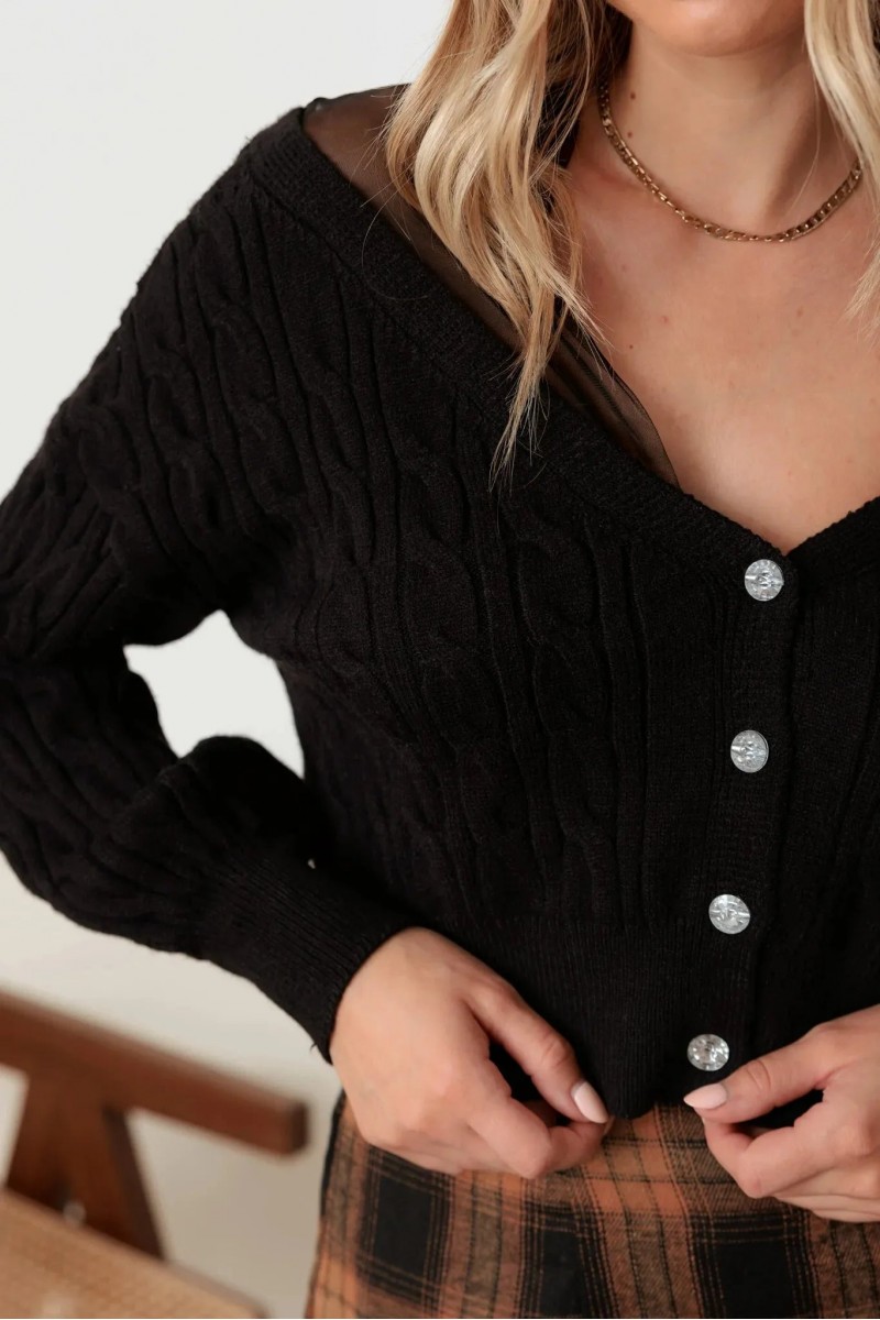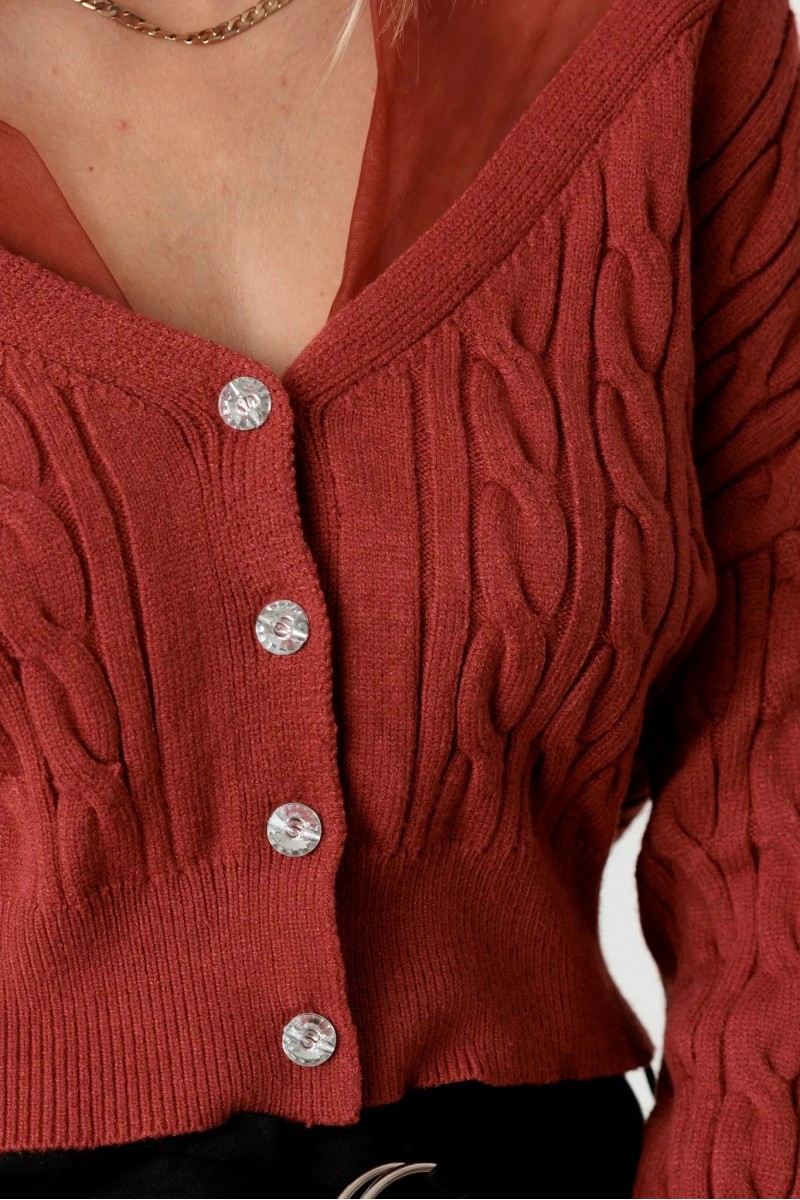 This sweet Cable Rhinestone Button-Up Long Sleeve Dropped Shoulders Sweater adds just the right amount of sparkle to your wardrobe. Featuring a classic cable-knit design and rhinestone buttons, this sweater is both stylish and cozy. Perfect for any occasion, this sweater will quickly become a favorite in your closet.
