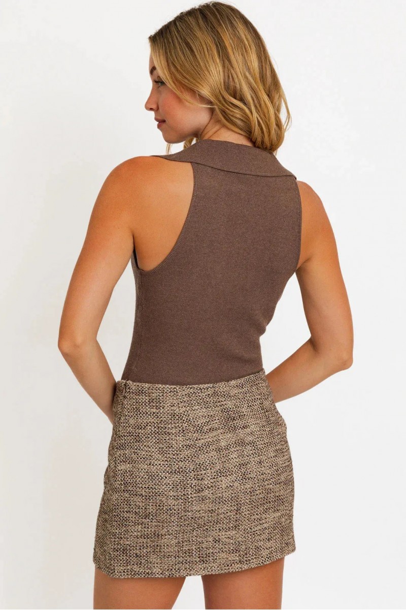 Collared Deep V-Neck Sleeveless Sweater Bodysuit