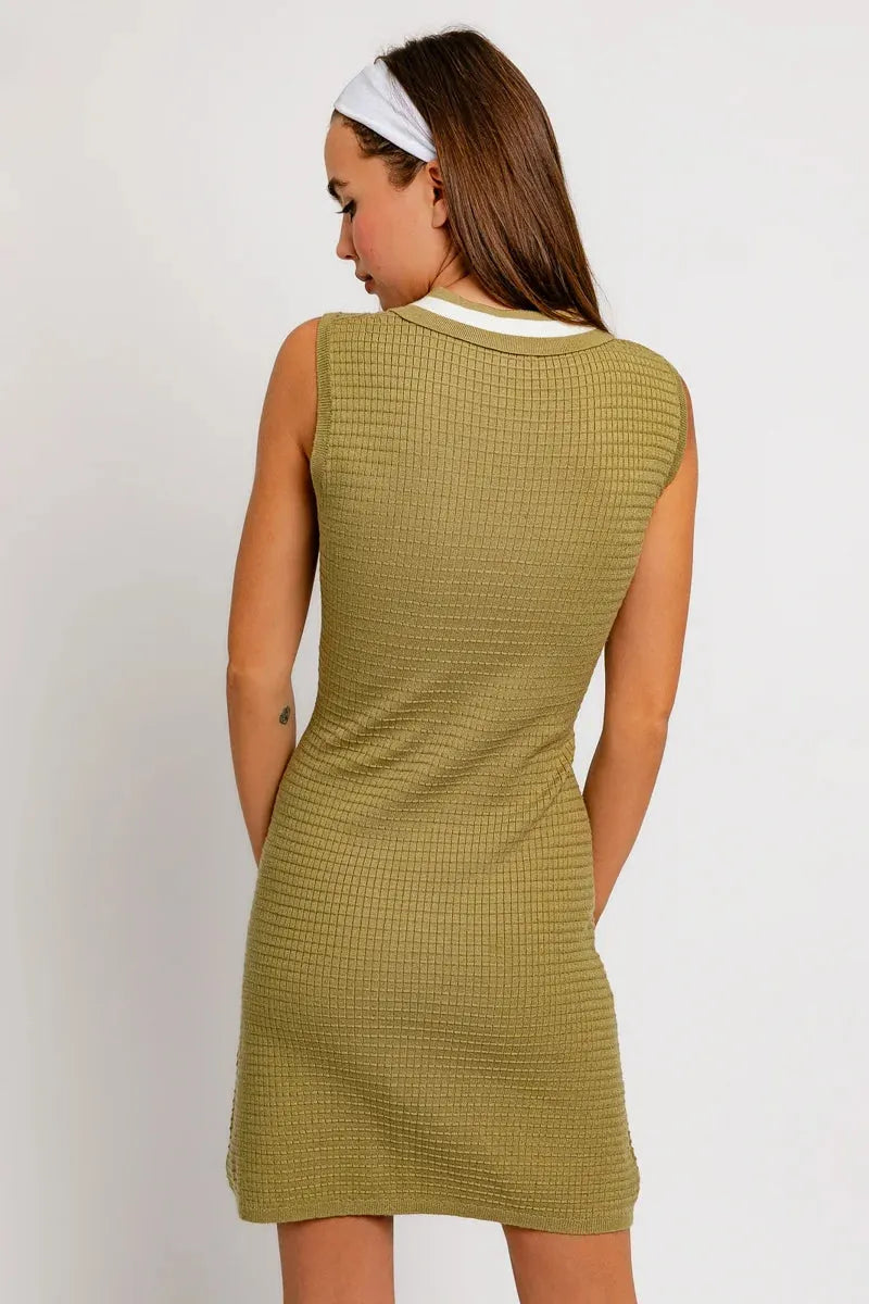 Design: Sleeveless Collared Cable Sweater Mini Tennis Dress — a chic blend of sporty and stylish, featuring a classic cable knit design with a collared neckline.