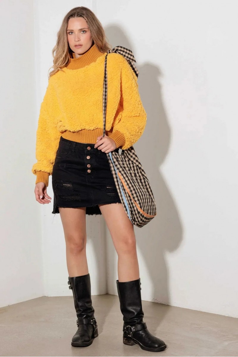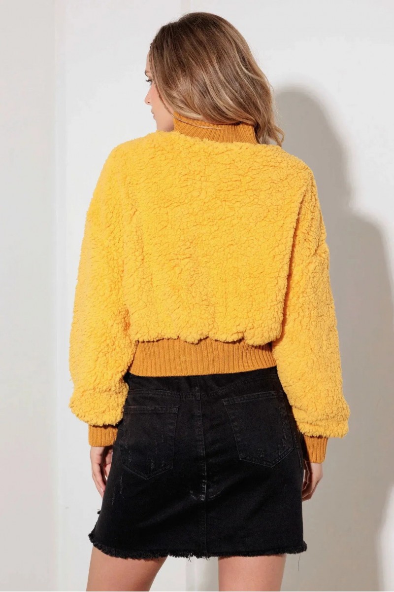 • Product Code: Fuzzy Ribbed Mock Neck Teddy Crop Sweater