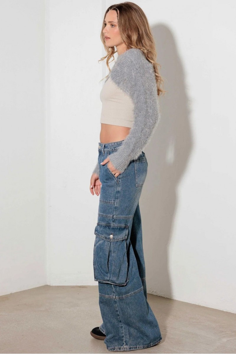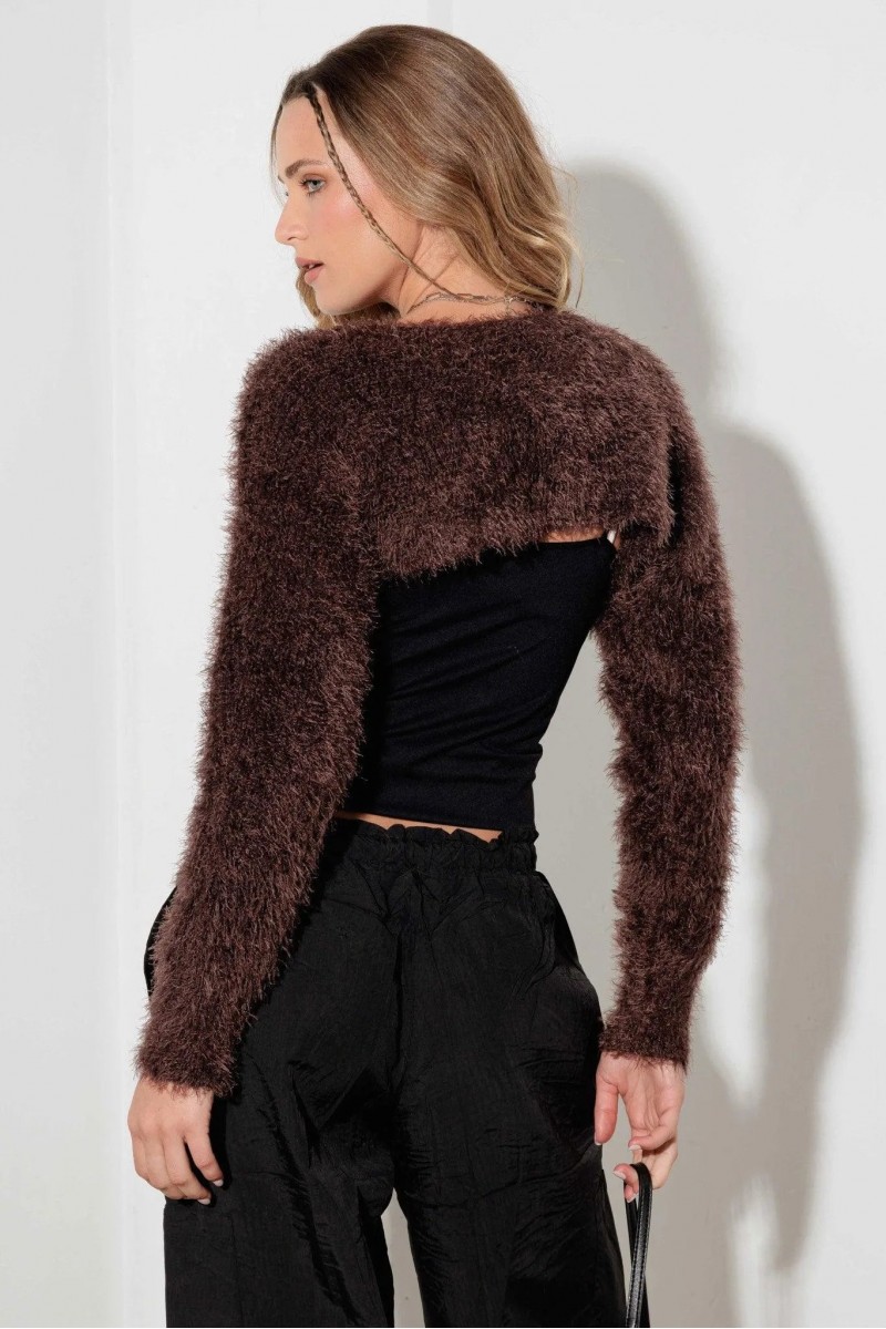 • Design: Ultra-Cropped Fit Long-Sleeve Fuzzy Bolero Sweater — a chic, trendy piece perfect for layering.
