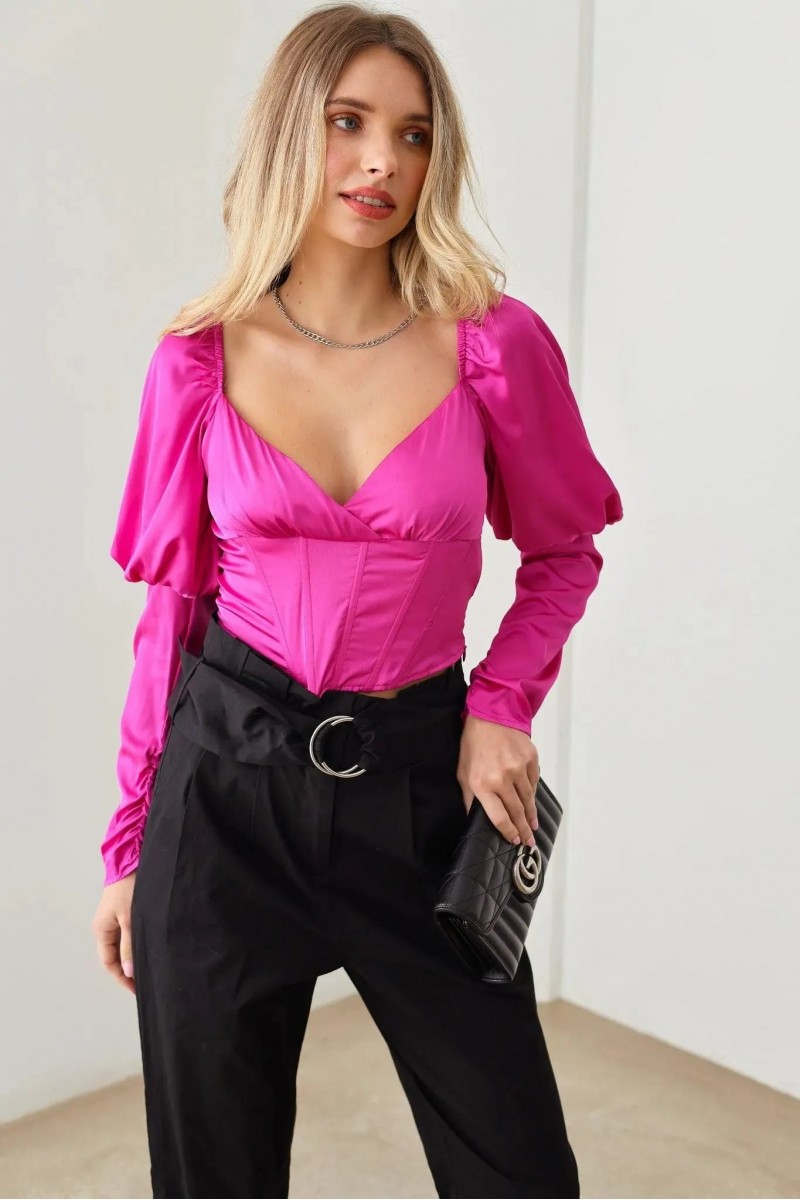 Introducing our Satin Long Puff Sleeve Corset Crop Top! This stylish top features luxurious satin fabric and dramatic puff sleeves, sure to make a statement. The built-in corset adds a touch of elegance and enhances your figure. Perfect for a night out or adding some flair to your everyday look. Say goodbye to boring basic tops!